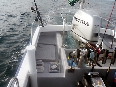 | 船尾右舷が私の釣り座 | フォール中に突然ドドン! |