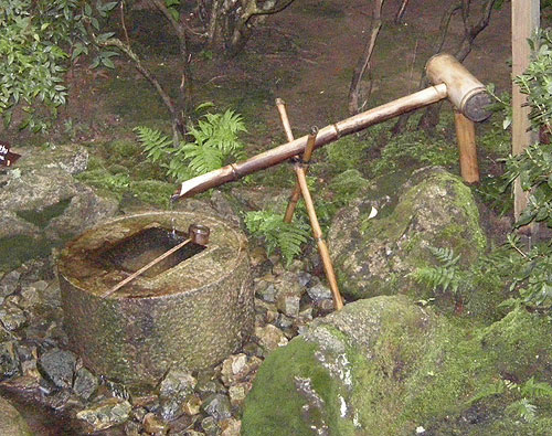 | 鏡容池。湖面が鏡のように木々を映すことから鏡容池のネーミングになったのか?国の名勝でもある。 四季を通して、桜や雪柳、カエデなどが池を美しく囲むらしいのだが、今回は紅葉にはまだ早く、時期的には良くなかった。桜の咲く頃はイイらしい。平安時代には、貴族が船を浮かべて遊んだという記録もある。 なお、水分石(みくまりいし:普通の人間には、とてもそう読めない)とは何か?と調べてみた。龍安寺から貰ったパンフレットには読み方も由来も書かれていない。 |